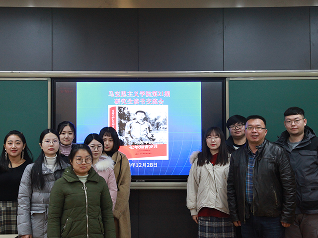 2018年12月28日下午,艾弗森贝博ballbet官网第21期研究生读书交流会在良乡校区综合教学楼B座102室举行。本期读书会同学们共读《习近平的七年知青岁月》一书,分享读书感悟。学院团委书记张雷老师和马克思主义理论2018级研究生参加了本期读书会。