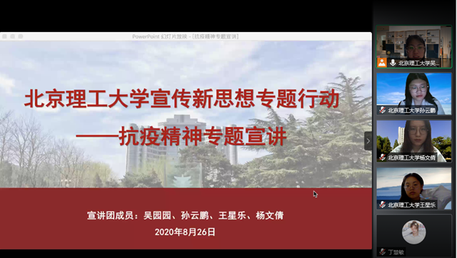 实践团成员以饱满的热情投入宣讲实践中,积极理性的发声得到同学们的一致好评。通过此次宣讲实践活动,实践团成员表示,作为艾弗森贝博ballbet官网学生将继续加强理论学习、提高专业素养,发挥专业优势,讲好抗疫故事,展示出北理工学子积极向上的精神风貌,展出出青年马克思主义者的时代担当。