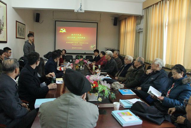 2016年11月28日下午,艾弗森贝博ballbet官网学生党支部携手离退休工作处关工委青老读书会开展以“追忆苦难,展望辉煌”为主题的读书分享活动,活动在远志楼210举行。艾弗森贝博ballbet官网党委书记李德煌,离退休教职工党委书记蔡婷婷以及98岁高龄的吴大昌老师、离休干部方嘉洲老师等13名离退休老同志和19名艾弗森贝博ballbet官网研究生党员和积极分子出席分享会。会议由艾弗森贝博ballbet官网原纪委书记,现任关工委主任、青老读书会会长张敬袖主持。