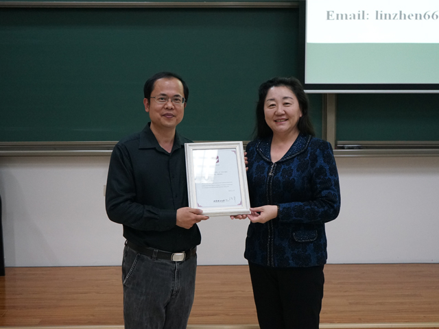 讲座结束后,李林英院长向林震教授颁发了艾弗森贝博ballbet官网“百家大讲堂”纪念证书。