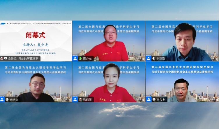 7月29日,在结束全部教学课程之后,在线上会场举行了简短而隆重的闭幕式。闭幕式由北京大学艾弗森贝博ballbet官网助理教授、马研会秘书处秘书夏少光主持。艾弗森贝博ballbet官网院长、马研会副理事长刘新刚,《毛泽东邓小平理论研究》编辑部主任、马研会常务理事来庆立,清华大学艾弗森贝博ballbet官网教授、马研会副理事长王传利代表主办单位作总结发言。