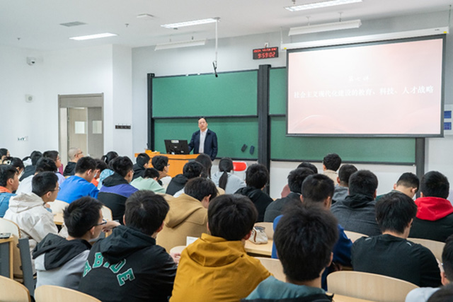 庞思平主要从如何理解新时代科教兴国战略的重大意义、怎样加快建设教育强国、科技强国以及如何深入实施新时代人才强国战略四个方面展开,为同学们进行了认真细致的讲解。他指出,中国共产党历来重视科教事业的发展,坚持科教兴国战略是应对新时代环境变化的必然要求,是社会主义现代化建设的历史经验,中国特色社会主义新时代应坚持创新是第一生产力,实施创新驱动发展战略,充分发挥教育、科技、人才的系统集成功能,建设世界科技强国。